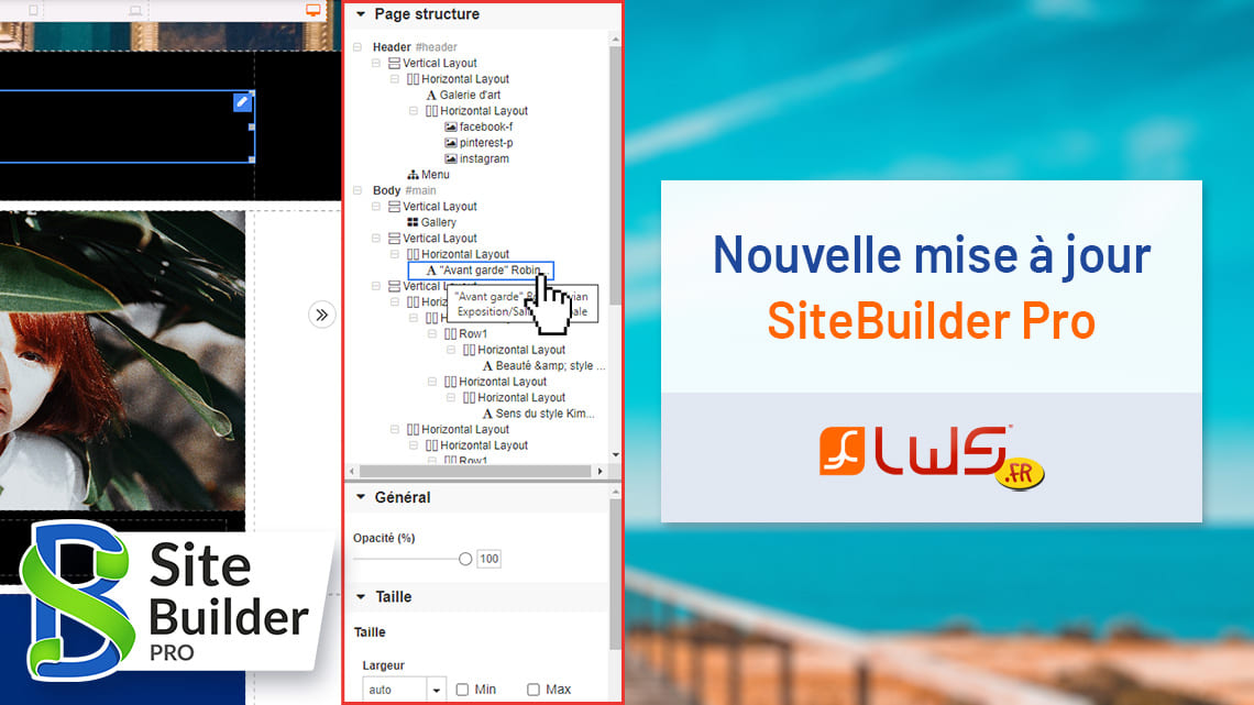 Première nouveauté dans la mise à jour ; la gestion de la structure des pages pour une meilleure lisibilité. Dorénavant vous pourrez retrouver tous les éléments qui constituent votre page dans la partie droite de votre écran, cela apporte un gros plus par rapport à la version précédente.